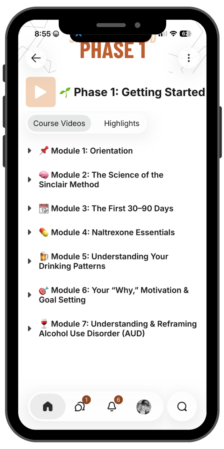 These lessons walk you through the real stages of change people experience on the Sinclair Method — from getting started with naltrexone to changing habits and eventually reaching freedom from alcohol use disorder.